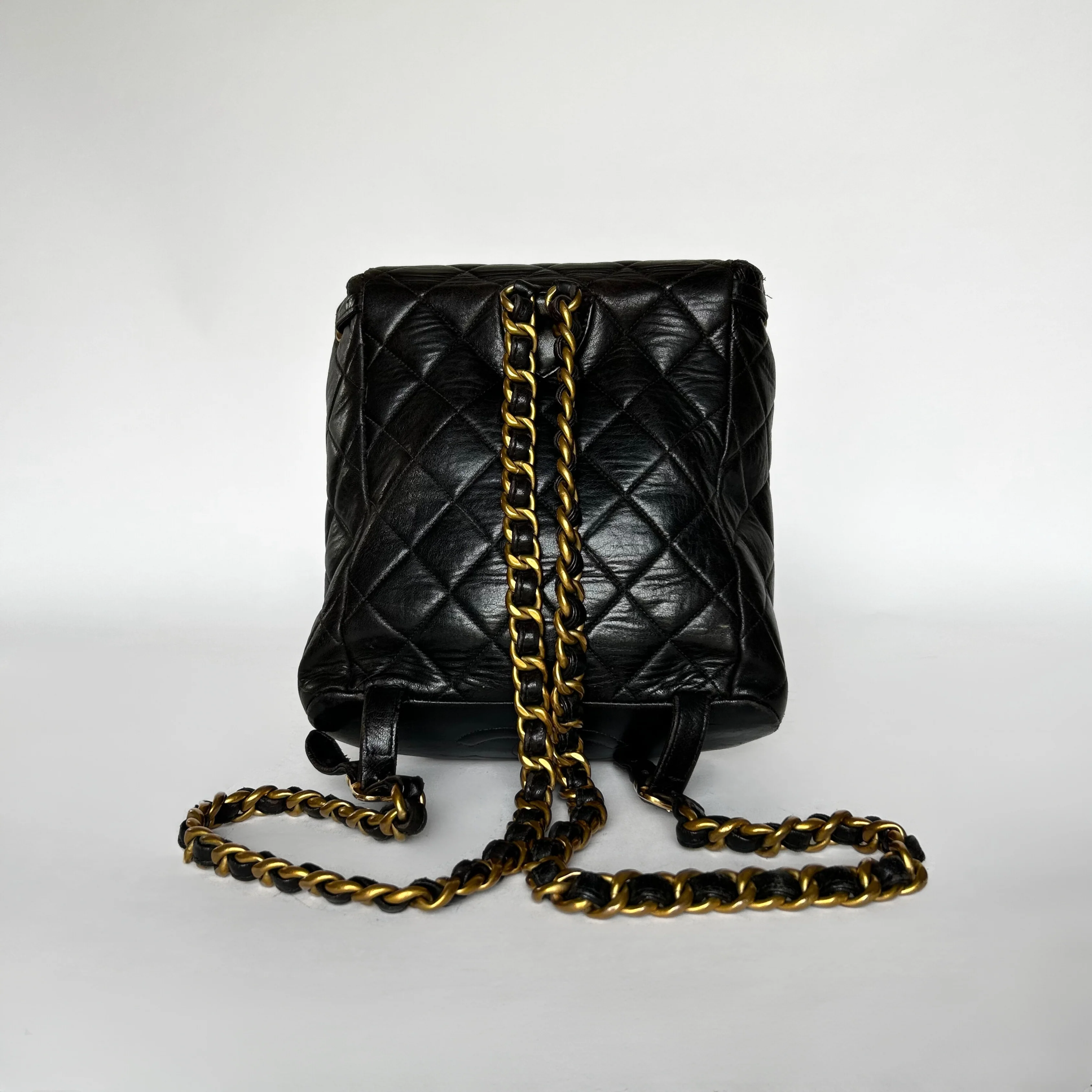 Chanel Duma Backpack in black Lambskin Leather. The black of this pretty backpack is very classic so the bag is a true fashion statement. Besides that, the Lambskin Leather is a really high quality. Overall this Chanel backpack is an iconic piece that is so practical for everyday use.
