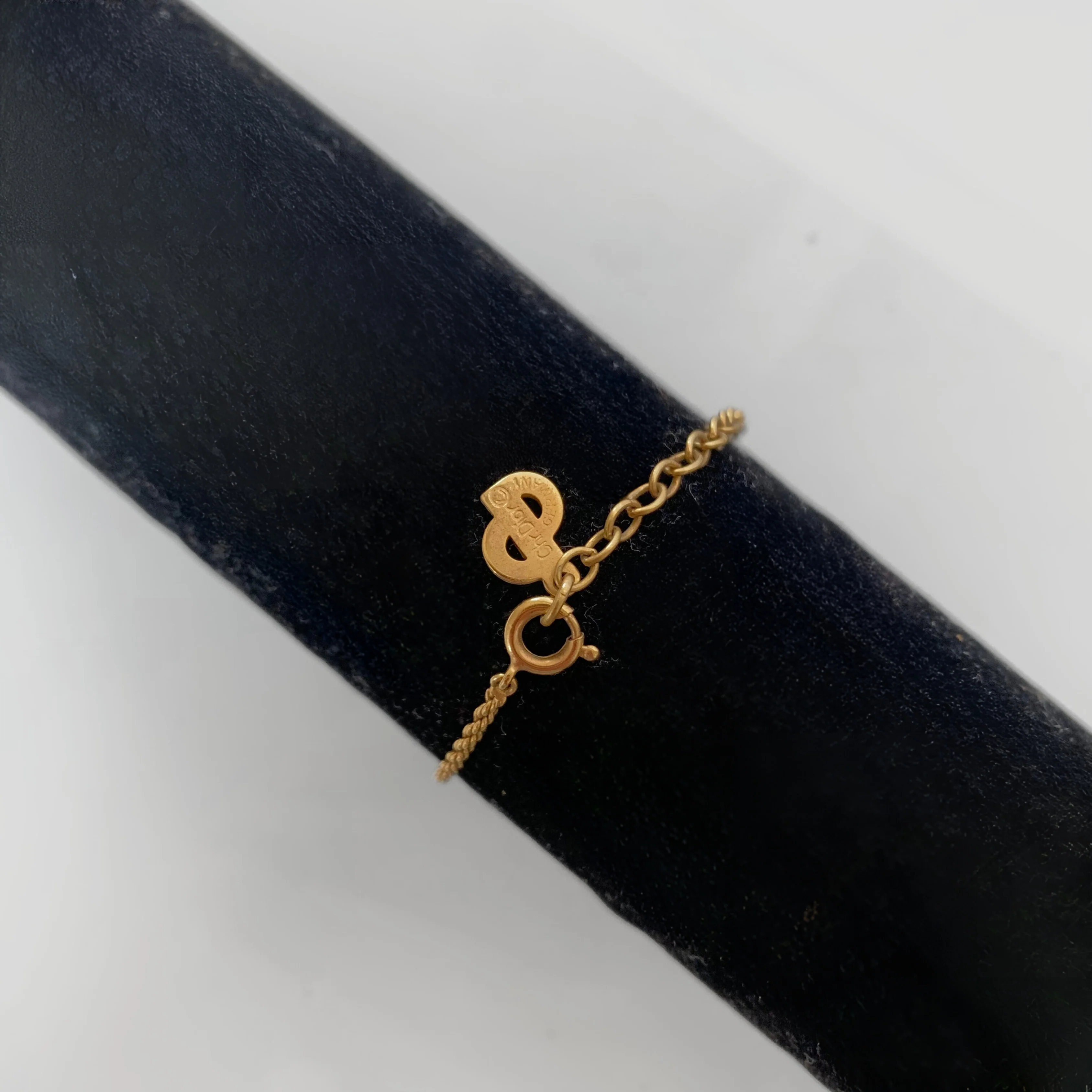 Dior CD Necklace in Gold Colored Metal. The chain is adjustable and consists of a gold metal chain and a round embellished pendant with the CD in the middle. The clasp features the Christian Dior logo. This necklace can be combined with any outfit.