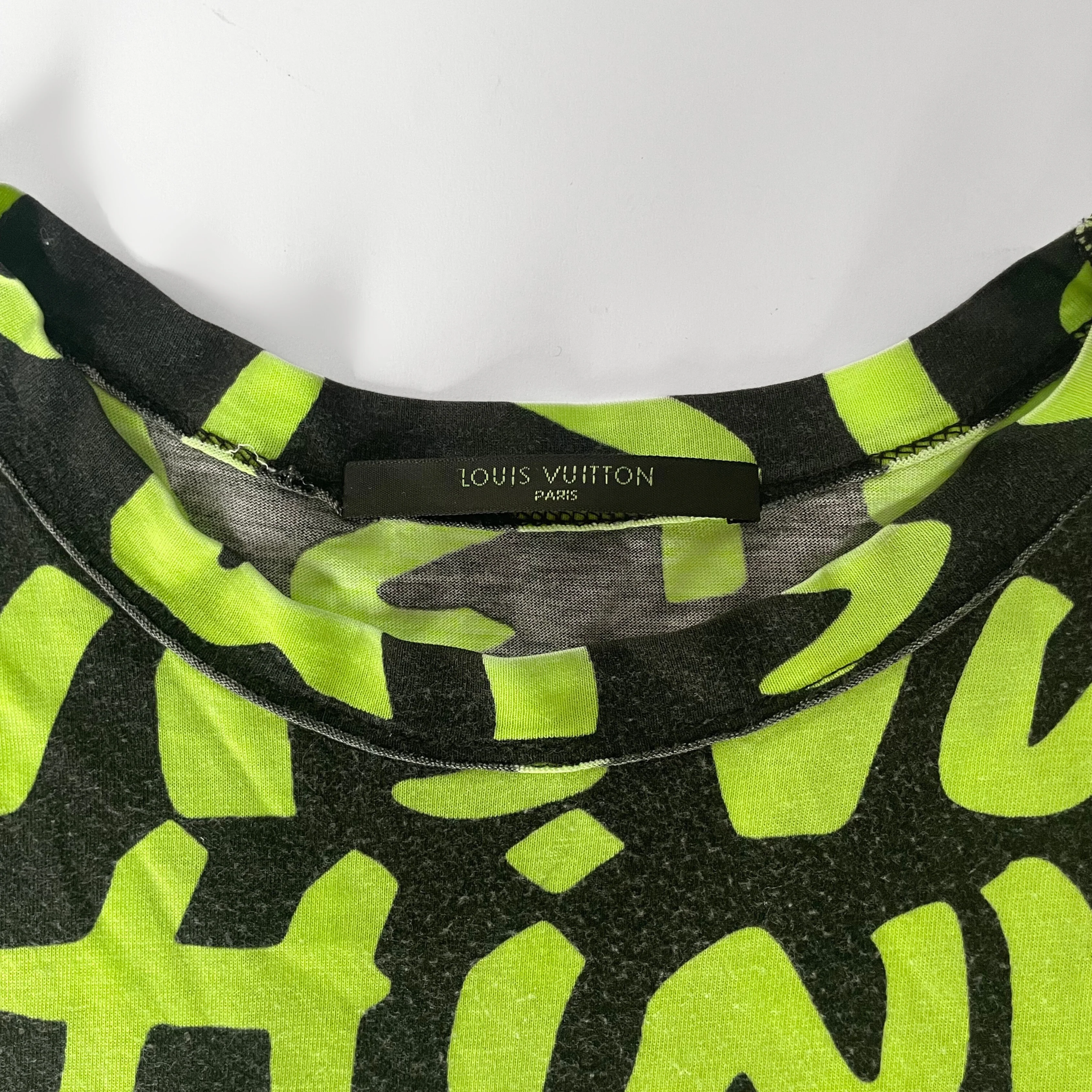 Louis Vuitton Logo T-shirt in black and neon green. This t-shirt is made of 50% Cotton, and 50% Modal which is a very soft and comfortable material. This T-shirt is a size S and can be perfectly combined with jeans.