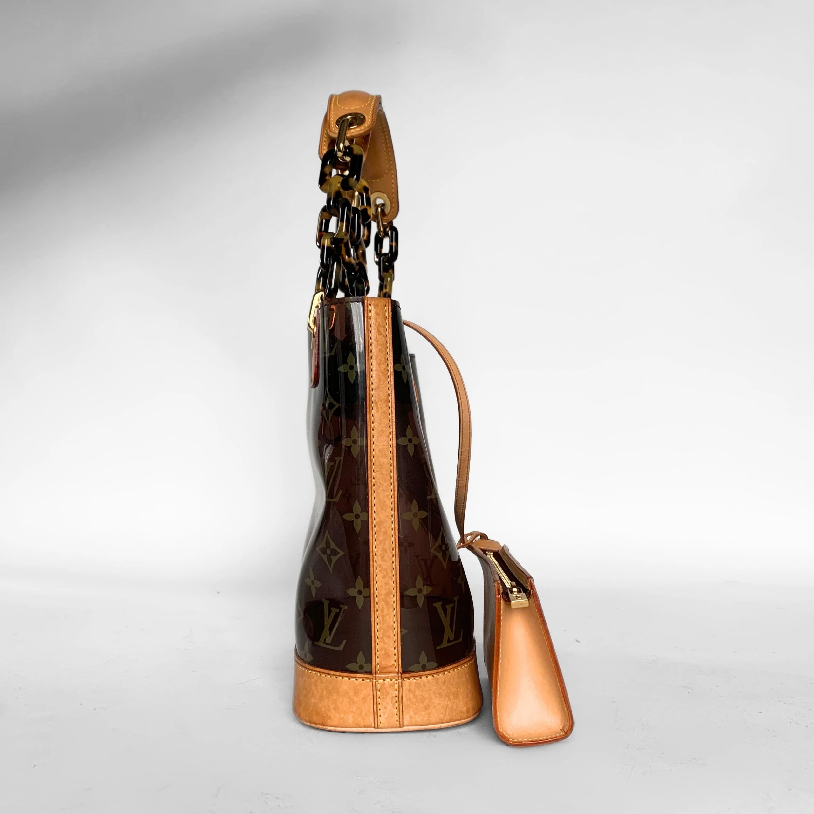 Louis Vuitton Cruise Tote made of Monogram Canvas printed Vinyl. The bag has Vachetta Leather details and gold-colored hardware. You can find animal printed hard plastic details on the handles of the bag. The inside bottom is made of suede and includes an extra attached small pouch to store small belongings. The bag can be worn by hand or on the wrist.